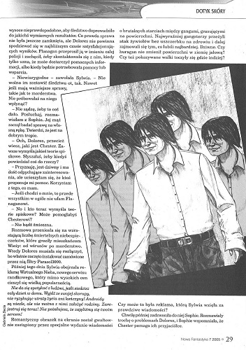 14. В рубрике «Felieton» напечатана статья “Zatrzymać Tolkiena, poruszyć fantasy/Сдержать Толкина, подтолкнуть фэнтези” , в которой Яцек Дукай оценивает достоинства и недостатки романа Стефа Суэйнстона «Год нашей войны» (Steph Swainston “Rok naszej wojny”. Tłum. Agnieszka Jaciewicz. “Solaris”, 2005) и сборника рассказов Анны Бжезиньской «Воды глубокие, как небо» (Anna Brzezińska “Wody glębokie jak niebo”. “Runa, 2005) (стр. 77).