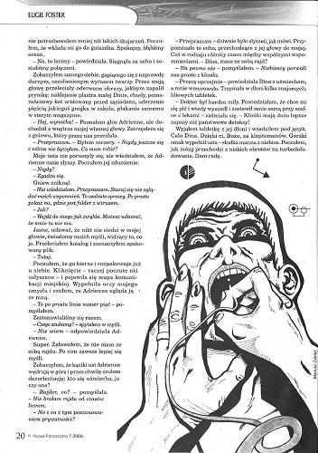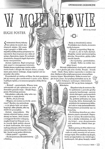 1.1. Рассказ американской писательницы Юджи Фостер/Eugie Foster, который называется в оригинале “All in My Mind” (2003, ант. “Hitting the Skids in Pixeltown”), перевел на польский язык под названием “W mojej głowie/В моей голове” БЛАЖЕЙ ДЗИКОВСКИЙ/Błażej Dzikowski. Иллюстрации МАРИУША ЗАДБИРА/Mariusz Zadbyr.