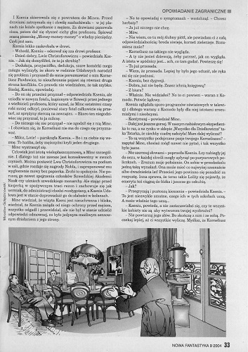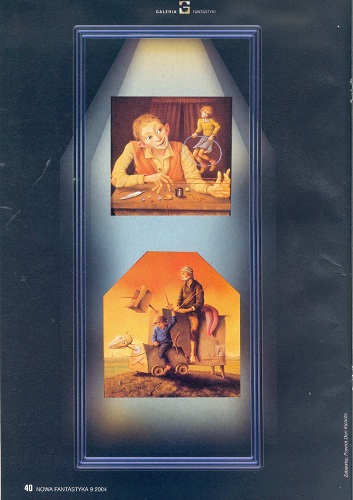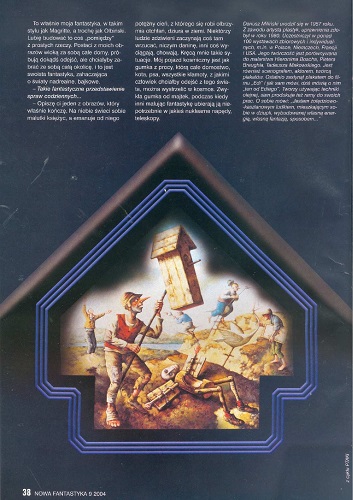 Роберт Зембиньский/Robert Zębiński обращает внимание читателей журнала на выдающуюся трилогию фэнтези британского писателя Филипа Пулмана «Темные материи» (1. Северное сияние; 2. Чудесный нож; 3. Янтарный телескоп» (Philip Pullman “Mroczne materie” [1. Zorza północna; 2. Magiczny nóż; 3. Bursztynowa luneta”]. Tłum. Danuta Górska. “Albatros”, 2004);