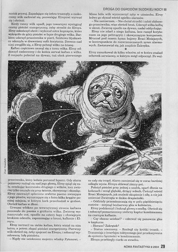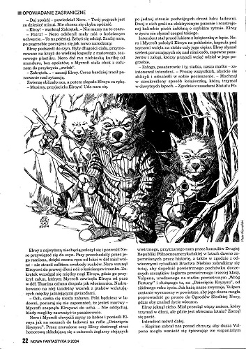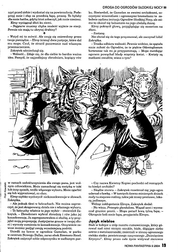 15. В рубрике «Felieton» напечатана статья “Lżej” , в которой Яцек Дукай рассматривает два «цикловых» тома фэнтези: «Хрустальный город» (6-й том цикла «Сказание о мастере Элвине») американского писателя Орсона Скотта Карда (Orson Scott Card “Krzyształowe Miasto” [“Opowieść o Alvinie Stwórcy”, t. 6]. Tłum. Piotr W. Cholewa. “Prószyński I S-ka”, 2004)