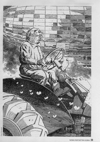 И это четырнадцатая публикация художественных произведений писателя в нашем журнале (предыдущие см. “Fantastyka” №№ 4/1983 и 11/1984; ”Nowa Fantastyka” № № 7/1996; 2/1997, 10/1997, 11/1997; 2/1998; 6/1998; 4/1999, 9-10/1999; 4/2000; 8/2001; 1/2002). В журнале (“Nowa Fantastyka”, 2/1997) печаталось также интересное интервью, заочно взятое у писателя ТАДЕУШЕМ ЛИТВИНЬСКИМ, одним из основных переводчиков его произведений на польский язык.