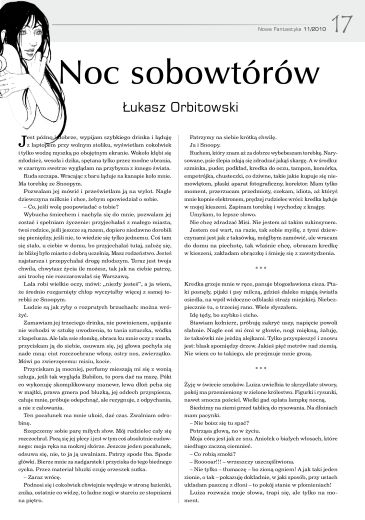 14.1. Рассказ “Noc sobowtórów/Ночь двойников” написал Лукаш Орбитовский/Łukasz Orbitowski (стр. 17—35). Иллюстрации ДАРИИ МАЙ/Daria Maj.