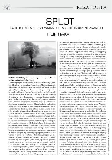 14.2. Очередной текст Филипа Хаки/Filip Haka под общим названием “Splot/Узел” публикуется на стр. 36—40. Вместо иллюстрации использована фотография дымящего паровоза, везущего состав из нескольких вагонов.