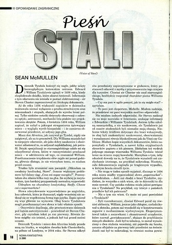 10.2. Рассказ австралийского писателя Шона Макмуллена/Sean McMullen, который называется в оригинале “Voice of Steel” (2002, “Sci Fiction”, 21 Aug.; 2013, авт. сб. “Ghost of Engines Past”), перевела на польский язык под названием “Pieśń stali/Гимн стали” ИОАННА ГРАБАРЕК/Joanna Grabarek (стр. 18—34).