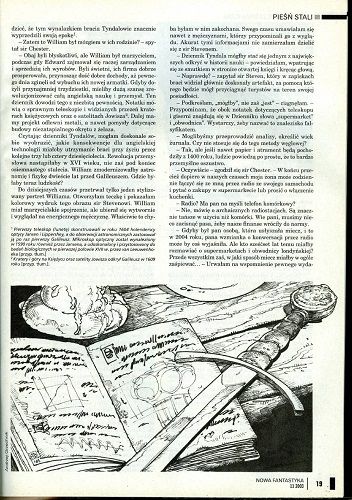 Орсон Скотт Кард в статье “Współpracując z wragem/Сотрудничая с врагом” рассказывает каково это – писать нечто в соавторстве. И приводит чье-то высказывание: «Писать в партнерстве – это делать двойную работу за половинную плату». И вздыхает: ах, если бы дело было только в половинной плате… Интересная статья. И, кстати, публикует для затравки начальный абзац рассказа и предлагает всем желающим написать завершение (стр. 75);