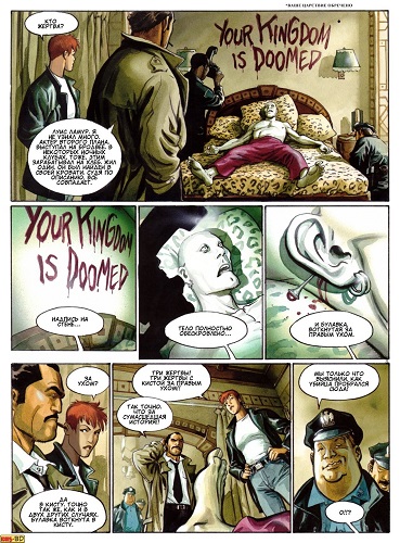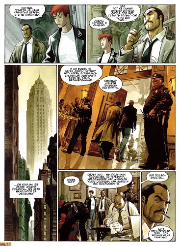 В Нью-Йорке находят погибшими людей с булавкой, воткнутой за правым ухом. Название города прямо не указано, но фотореалистические рисунки ЭНРИКО МАРИНИ и надписи на полицейских машинах не оставляют сомнений. Молодой швейцарец подробно воскрешает мир сценариста, известного у нас, в Польше, хотя бы по «Истории, высосанной из сосульки» (нарисованной БАРАНОВСКИМ) и «Элегии утраченных земель» (с визуальным рядом РОСИНЬСКОГО).