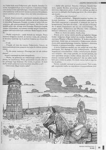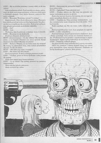 6. В рубрике «Среди фэнов» напечатаны отчеты о конференции «Фантастика пред лицом перемен» (Познань), очередной встрече в MCKiS на Электоральной в Варшаве (была посвящена военной тематике в НФ) и очередному Пыркону (28-30 марта, Познань) (стр. 10).