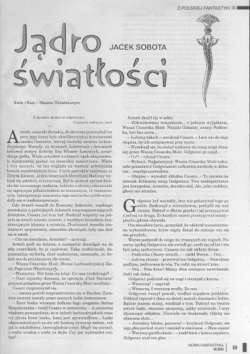 10. В этой же рубрике опубликован очередной рассказ (скорее небольшая повесть) Яцека Соботы/Jacek Sobota “Jądro światłości/Средоточие света” (стр. 55 – 68). Иллюстрации МАГДАЛЕНЫ ЕНДЖЕЙЧАК-НАЛЯЗЕК/Magdalena Jędrzejczak-Nalazek.