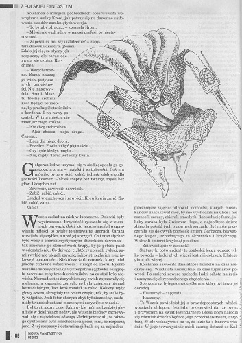 7. Повесть американского писателя Люциуса Шепарда/Lucius Shepard, которая называется в оригинале “Kalimantan” (1990, “Kalimantan”; 1990, авт. сб. “Kalimantan”; 1993, авт. сб. “Kalimantan ”), перевел на польский язык под названием “Kalimantan/Калимантан” ТОМАШ ГАЛОНЗКА /Tomasz S. Gałązka (стр. 13-29). Иллюстрации МОНИКИ РОКИЦКОЙ/Monika Rokicka. В номере напечатана первая часть перевода.