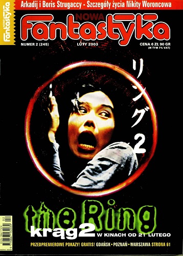 Февральский номер 2003 года (152-й «Новой Фантастыки» и 245-й, если считать ab ovo) редактируют: Анджей Бжезицкий/Andrzej Brzezicki (художественно-оформительский отдел), Марек Нововейский/Marek S. Nowowiejski (отдел иностранной литературы), Марек Орамус/Marek Oramus (отдел критики и публицистики), Мацей Паровский/Maciej Parowski (отдел польской литературы, главный редактор), Кшиштоф Шольгиня/Krzysztof Szolginia (секретарь редакции), Веслава Ярых/Wiesława Jarych (корректура). В списке постоянных сотрудников числятся: Яцек Дукай/Jacek Dukaj, Аркадиуш Гжегожак/Arkadiusz Grzegorzak, Марек Холыньский/Marek Hołyński, Лех Енчмык/Lech Jęczmyk, Анджей Качоровский/Andrzej W. Kaczorowski, Анджей Колодыньский/Andrzej Kołodyński, Доминика Матерская/Dominika Materska, Аркадиуш Наконечник/Arkadiusz Nakoniecznik, Анджей Сапковский/Andrzej Sapkowski, Яцек Собота/Jacek Sobota, Гжегож Щепаняк/Grzegorz Szczepaniak, Бартек Свидерский/Bartek Świderski, а также Agregator, Aligator, Anihilator, Kunktator, Negocjator, Predator, Reanimator и Terminator. Тираж номера не указан. В оформлении лицевой стороны передней обложки использован рекламный плакат фильма “The Ring-2”. Внутренняя сторона передней обложки занята рекламой книжной продукции издательства “Prószyński i S-ka”. В «Галерее» (стр. 17-24) размещены репродукции работ британского художника ДЖИМА БАРНСА/Jim Burns, почерпнутые из альбома “Transluminal” (London: “Paper Tiger”). На внутренней стороне задней обложки напечатан анонс следующей «Галереи» (репродукция работы художника СТИВЕНА ЮЛЛА/Stephen Youll). На внешней стороне задней обложки расположена афиша фильма польского режиссера Анджея Чечота “Eden”. Цена экземпляра -- 6 злотых 90 грошей.