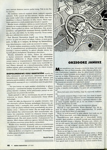 9. В рубрике «Критики о фантастике» Якуб Лиханьский/Jakub Z. Lichański в большой статье “RPG – teatr fantazji?/RPG – театр фантазии?” размышляет над феноменом современной поп-культуры – ролевыми играми (стр. 71–73).