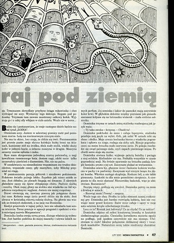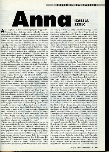 Гжегож Щепаняк/Grzegorz Szepaniak знакомит читателей журнала с новым романом польского писателя Феликса Креса «Брошенное королевство» (Feliks W. Kres “Porzucone królestwo”. “MAG”, 2002), в которой ему не нравится пессимизм автора, прямо-таки предрекающего гибель Шереру – сконструированному им ранее миру;