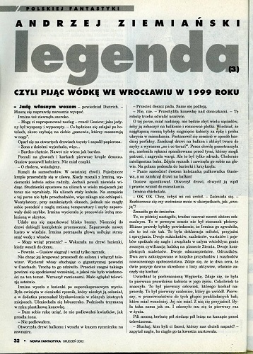 4. Рассказ “Legenda czyli pijąc wódkę we Wrocławiu w 1999 roku” написал Анджей Земяньский/Andrzej Ziemiański (стр. 32 – 46). Иллюстрации ПЕТРА КОВАЛЬСКОГО/Piotr Kowalski. В номере напечатана третья (заключительная) часть рассказа.