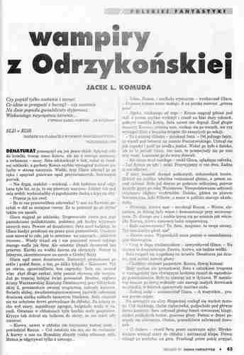 Мацей Паровский: Я думал об этом. Но это значит – выставить себя на осмеяние, присуждая премию вместе с Енчмыком, Орамусом и Шольгиней! Во-первых, мне придется выбирать между авторами со своих страниц, обидев кого-то из них. Во-вторых, делать выбор между другими авторами, и моими, что нарушило бы принцип справедливости. Когда существовал один лишь журнал «Фантастыка», а других не было, он мог присуждать премию. И дотянуться до Земкевича с его рассказом «Человек в поезде/Człowiek z pocągu» из «Проблем/Problemy». А сейчас мы соревнуемся, воюем. Первая жертва на войне – правда.