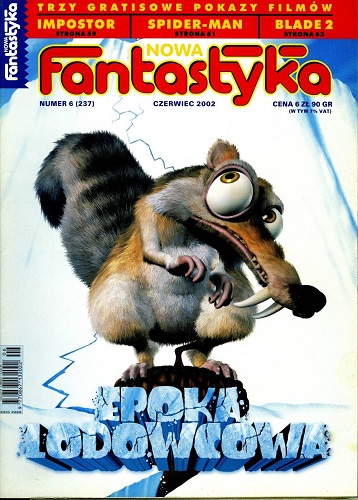 Июньский номер 2002 года (144-й «Новой Фантастыки» и 237-й, если считать ab ovo) редактируют: Анджей Бжезицкий/Andrzej Brzezicki (художественно-оформительский отдел), Марек Нововейский/Marek S. Nowowiejski (отдел иностранной литературы), Марек Орамус/Marek Oramus (отдел критики и публицистики), Мацей Паровский/Maciej Parowski (отдел польской литературы, главный редактор), Кшиштоф Шольгиня/Krzysztof Szolginia (секретарь редакции), Веслава Ярых/Wiesława Jarych (корректура). В списке постоянных сотрудников числятся: Яцек Дукай/Jacek Dukaj, Аркадиуш Гжегожак/Arkadiusz Grzegorzak, Марек Холыньский/Marek Hołyński, Лех Енчмык/Lech Jęczmyk, Анджей Качоровский/Andrzej W. Kaczorowski, Анджей Колодыньский/Andrzej Kołodyński, Доминика Матерская/Dominika Materska, Аркадиуш Наконечник/Arkadiusz Nakoniecznik, Анджей Сапковский/Andrzej Sapkowski, Войтек Седенько/Wojtek Sedeńko, Яцек Собота/Jacek Sobota, Гжегож Щепаняк/Grzegorz Szczepaniak, Бартек Свидерский/Bartek Świderski, а также Agregator, Aligator, Anihilator, Kunktator, Negocjator, Predator, Reanimator и Terminator. Тираж номера не указан. В оформлении лицевой стороны передней обложки использована афиша мультипликационного фильма “Ice Age”. Внутренняя сторона передней обложки занята рекламой книг издательства “Prószyński i S-ka”. В «Галерее» представлены работы американского художника ДЖИМА БАРНСА/Jim Burns. На внутренней стороне задней обложки размещена рекламная афиша фильма “Blade 2”. На внешней стороне задней обложки рекламируется фильм “Spider Man”. Цена экземпляра -- 6 злотых 90 грошей.