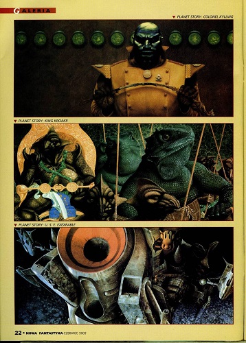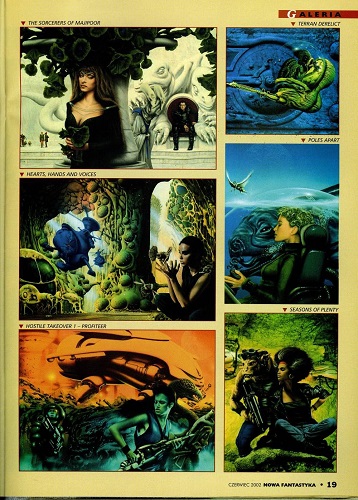 6. В рубрике «Кино и фантастика» Аркадиуш Гжегожак/Arkadiusz Grzegorzak в статье “Dwie trylogie/Две трилогии” рассказывает о фильме режиссера Джорджа Лукаса “Star Wars: Epizode II – Attack of the Clones” (США, 2002) (стр. 57 – 59); а Войцех Калужиньский/Wojciech Kałużyński в статье “Smith powroci/Смит вернется” описывает добавочный материал к «Матрице», вышедший на DVD под названием “The Matrix Revizited” (США, 2001) (стр. 61).