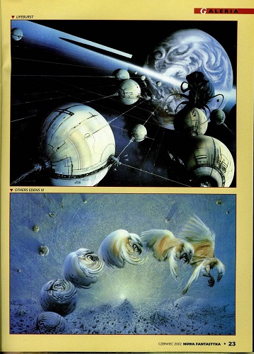 13. В рубрике «NAUKA I SF» под названием цикла “Czekając na punkt omega (3)” и заголовком “Fizyka zmiartwychwstania/Физика воскрешения из мертвых” печатается продолжение обсуждения гипотезы Фрэнка Типлера (начало см. “Nowa Fantastyka” № 8/2001 и 12/2001), в котором Януш Цыран обсуждает применение модели Типлера для достижения указанной в заголовке цели (стр. 71-73).
