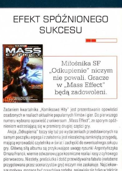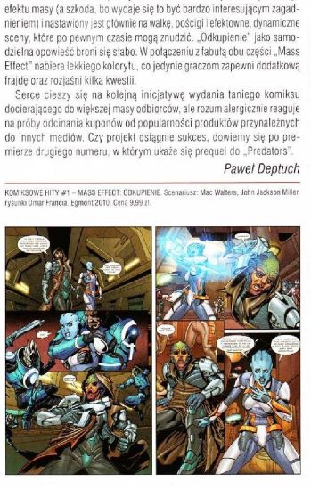 ”Komiksowe hity #1 – Mass Effect: Odkupienie”. Scenariusz: Mac Walters, John Jackson Miller, rysunki Omar Francia. „Egmont”, 2010 (КОМИКСНЫЕ ХИТЫ № 1 – МАССОВЫЙ ЭФФЕКТ: ИСКУПЛЕНИЕ. Сценарий Мака Уолтерса и Джона Джексона Миллера, рисунки ОМАРА ФРАНСИИ. “Egmont”, 2010)