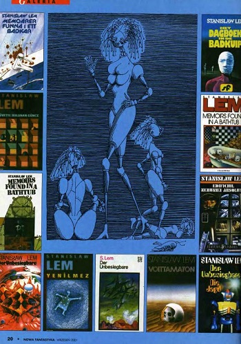 Сентябрьский ("лемовский" — Станиславу Лему исполнилось 80 лет!) номер 2001 года (133-й «Новой Фантастыки» и 226-й, если считать ab ovo) редактируют: Анджей Бжезицкий/Andrzej Brzezicki (художественно-оформительский отдел), Марек Нововейский/Marek S. Nowowiejski (отдел иностранной литературы), Марек Орамус/Marek Oramus (отдел критики и публицистики), Мацей Паровский/Maciej Parowski (отдел польской литературы, главный редактор), Кшиштоф Шольгиня/Krzysztof Szolginia (секретарь редакции), Веслава Ярых/Wiesława Jarych (корректура). В списке постоянных сотрудников числятся: Яцек Дукай/Jacek Dukaj, Аркадиуш Гжегожак/Arkadiusz Grzegorzak, Марек Холыньский/Marek Hołyński, Яцек Инглëт/Jacek Inglot, Лех Енчмык/Lech Jęczmyk, Анджей Качоровский/Andrzej W. Kaczorowski, Анджей Колодыньский/Andrzej Kołodyński, Доминика Матерская/Dominika Materska, Аркадиуш Наконечник/Arkadiusz Nakoniecznik, Анджей Сапковский/Andrzej Sapkowski, Войтек Седенько/Wojtek Sedeńko, Яцек Собота/Jacek Sobota, Гжегож Щепаняк/Grzegorz Szczepaniak, а также Agregator, Aligator, Anihilator, Karburator, Kunktator, Negocjator, Obserwator, Predator, Reanimator и Terminator. Тираж номера не указан. В оформлении лицевой стороны передней обложки использован фотопортрет Станислава Лема, выполненный АДАМОМ УСТЫНОВИЧЕМ/Adam Ustynowicz, на внутренней стороне передней обложки напечатан рекламный плакат фильма “Final Fantasy”, в «Галерее» представлены работы лучшего иллюстратора Лема, польского художника ДАНИЭЛЯ МРУЗА/Daniel Mróz, в обрамлении обложек книжных изданий произведений Ст. Лема (стр. 17-24). Заднюю обложку я не вижу. Цена экземпляра -- 6 злотых 40 грошей.