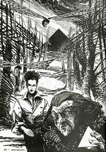 И это десятое появление писателя на страницах нашего журнала (см. “Fantastyka” №№ 1-2/1982, 7/1983, 7/1986, 8/1988, 11-12/1989, 6-7/1991; “Nowa Fantastyka” №№ 10/1991, 4/1992, 8/1995). Повесть номинировалась на получение премий “Hugo” и “Lokus”, она переводилась на немецкий, французский, румынский, японский языки. На русский язык повесть впервые перевела в 1995 году под названием «И берегись двуногого кровь пролить» Н. МАГНАТ. Глянуть на карточку повести можно здесь А почитать об авторе можно тут