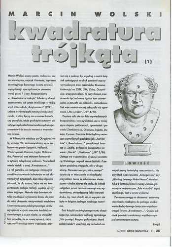 3. В рубрике «Powieść» размещена повесть (скорее все же роман, но пусть будет повесть) Марцина Вольского/Marcin Wolski “Kwadratura trójkąta/Квадратура треугольника” (стр. 25-43). Иллюстрации ПЕТРА КОВАЛЬСКОГО/Piotr Kowalski. В номере публикуется начало повести.