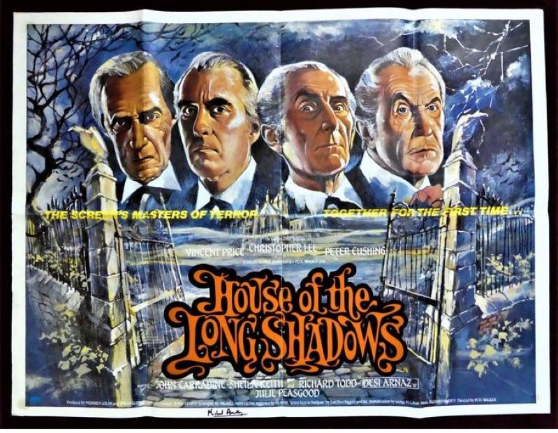 «Дом длинных теней» (“House of Long Shadows”). Режиссер Питер Уолкер. В ролях: Кристофер Ли, Питер Кушинг, Джон Кэрродайн, Винцент Прайс. США, 1984.