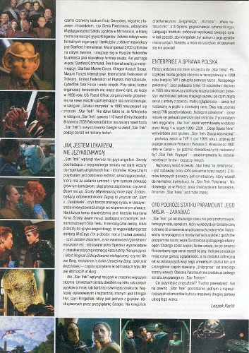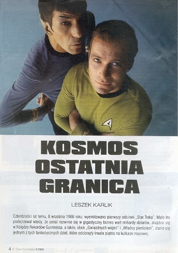 2. В рубрике «Публицистика» размещена большая и достаточно информативная статья Лешека Карлика/Leszek Karlik “Kosmos – ostatnia granica/Космос – последняя граница” (стр. 4—8) – о легендарном уже сериале “Star Trek”.