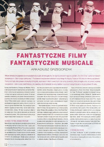 4. В этой же рубрике Аркадиуш Гжегожак/Arkadiusz Grzegorzak в статье “Fantastyczne filmy fantastyczne musicale/Фантастические фильмы, фантастические мюзиклы” рассматривает проблемы сочетания мюзикла с кино и театром (стр. 12--13).