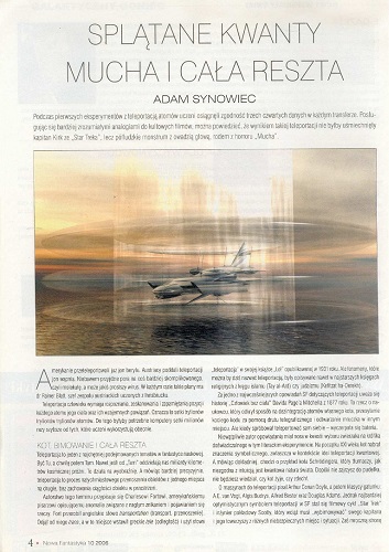 2. В рубрике «Публицистика» напечатана статья Адама Сыновца/Adam Synowiec “Splątane kwanty, mucha I cała reszta/Перепутанные кванты, муха и все остальное” (стр. 4 -6), ее тема – научные основания телепортации и современные попытки ее наладить.