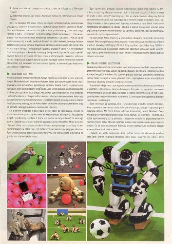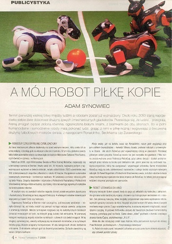 2. В рубрике «Публицистика» напечатана статья Адама Сыновца/Adam Synowiec “A mój robot piłkę kopie/А мой робот футбольный мяч гоняет” (стр. 4–6) – ну так ведь никуда не денешься: робототехника развивается, роботы совершенствуются, их возможности расширяются.