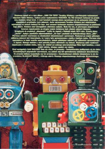10. В этой же рубрике напечатана большая статья Романа Оцепы/Roman Ociepa «Literatura a fenomen RPG/Литература и феномен RPG», в который автор довольно пренебрежительно отзывается об указанных играх (стр. 66-67), и примыкающая к ней реплика Ивоны Жултовской/Iwona Żółtowska «Żywe słowo/Живое слово», где эта известная писательница НФ (и в дальнейшем еще более известная переводчица) выступила в защиту обозначенного явления (стр. 67).
