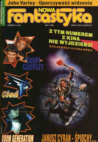 Майский номер 1995 года (59-й «Новой Фантастыки» и 152-й, если считать ab ovo), редактируют: Анджей Бжезицкий/Andrzej Brzezicki (художественно-оформительский отдел), Дорота Малиновская/Dorota Malinowska (отдел иностранной литературы), Марек Орамус/Marek Oramus (отдел критики и публицистики), Тереза Пайдиньская/Teresa Pajdińska (корректура), Мацей Паровский/Macej Parowski (отдел польской литературы, главный редактор), Ганна Сосиньская-Бальцер/Hanna Sosińska-Balcer(технический отдел), Кшиштоф Шольгиня/Krzysztof Szolginia (секретарь редакции). В списке постоянных сотрудников числятся: Вальдемар Чернишевский/Waldemar Czerniszewski; Адам Холлянек/Adam Hollanek, Яцек Инглëт/Jacek Inglot, Лех Енчмык/Lech Jęczmyk, Анджей Качоровский/Andrzej W. Kaczorowski, Славомир Кендзерский/Sławomir Kędzierski, Аркадиуш Наконечник/Arkadiusz Nakoniecznik, а также Denuncjator, Inkwizitor, Karburator, Kunktator, Negocjator, Predator, Reanimator, Sekator, Wentylator и Wibrator. Тираж – 90 тысяч экземпляров. В оформлении передней обложки использована работа испанского художника ЛУИСА РОЙО/Luis Royo. Эксперимент с использованием журнала в качестве входного билета на киносеанс продолжается. На этот раз читателей-киноманов приглашают на показ аж трех фильмов. "С этим номером журнала ты из кинотеатра не выйдешь" -- обещает редактор журнала. На внутренней стороне передней обложки рекламируется фильм «Тупой и еще тупее». В «Галерее» этого номера АНДЖЕЙ БЖЕЗИЦКИЙ знакомит читателей с возможностями создания с помощью компьютерных программ зрительных иллюзий (стр. 17-23). Заднюю обложку описать опять же не могу, поскольку в моем экземпляре журнала она отсутствует.