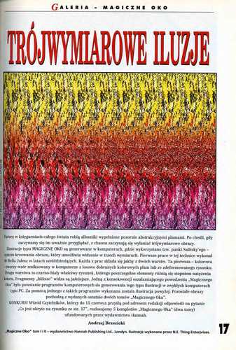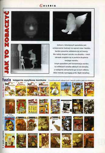 8. В рубрике «НФ в мире» Кшиштоф Липка/Krzysztof Lipka рецензирует апрельский 1994 года номер журнала “Locus”, а Ласло Абран/László Ábrán рассказывает о ноябрьском и декабрьском 1994 года номерах венгерского журнала “Galaktika” (стр. 72). На этой же странице размещено краткое сообщение Мацея Паровского о Третьем Общепольском конвенте любителей научной фантастики и ролевых игр (Krakon’95), состоявшемся 17-19 февраля в г. Кракове.