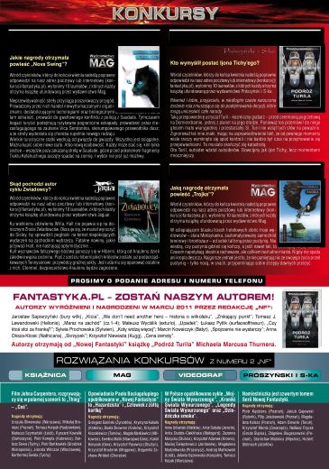 «Галереи» в этом номере нет, вместо нее печатается реклама (и ее много). Все остальное также в прежнем духе: все так же много цвета, графических материалов, пестроты (врезки с ударными выводами). Отдел прозы открывается отечественными (польскими), а не иностранными рассказами. Все так же широк раздел книжных рецензий, узки разделы рецензий фильмов в прокате и фильмов на DVD, имеется скромный уголок рецензий компьютерных игр, в отделе рецензий комиксов одна страница, на которой рецензируются два комикса.