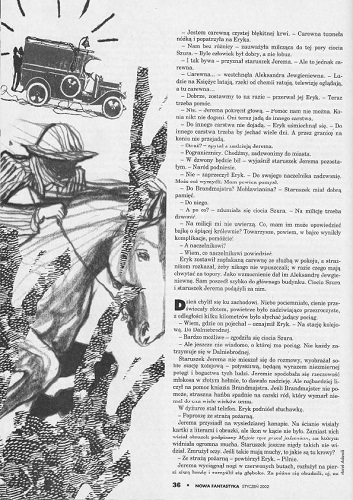 9. В рубрике «Встреча с писателем» Агнешка Бартник/Agnieszka Bartnik пытается выпытать что-либо интересное у Кирилла Еськова/Kirył Jeśkow (разница в написании фамилии Yeskow/Jeśkow – не ошибка: под первым написанием в Польше вышел его роман “Ostatni władca pierścienia”, а второе – авторская транскрипция с русского на польский). Еськов всячески отбивается от звания писателя (“да не писатель я, а графоман, любитель”; “все, что я писал, было написано для развлечения приятелей”), объясняет почему у него эльфы злые, а орки добрые… ну, в общем, все как всегда у Еськова, переводить это не имеет особого смысла – можно почитать и в родных палестинах (стр. 66-67).