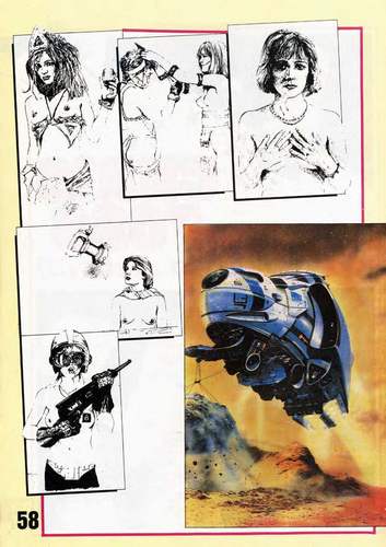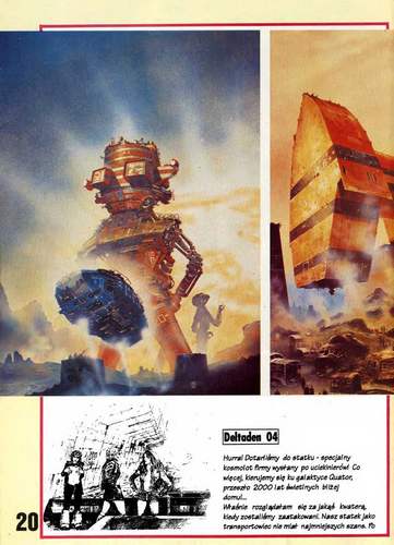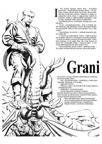 5. В рубрике «Из польской фантастики» в номере публикуется первая часть очередной новеллы Анджея Сапковского о ведьмаке Геральте «Granica możliwośći/Предел возможного» (стр. 14-16, 25-34). По словам Сапковского, «”Granica możliwośći” это рассказ о драконе. Фэнтези без дракона это все равно, что хозяин без хаты или девушка без чувства юмора, которая к тому же выпить не дает. Как обычно, это новелла о ведьмаке Геральте, и, как обычно, это правдивая история. История о событии, которое народ по своей бездонной простоте перетолковал в лживую сказочку о Вавельском змее. Или, может быть, <это рассказ> не о драконе, а о человеческих характерах?». И далее, обращаясь непосредственно к Паровскому: «Рассказ длинный. Сократить не удалось. И тебе не удастся тоже…» Рассказ прекрасно иллюстрировал БОГУСЛАВ ПОЛЬХ/Bogusław Polch…Ниже показаны два из семи рисунков.