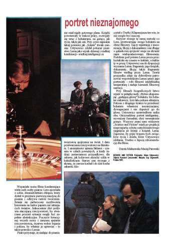 6. Блок «лемовских» материалов открывает рецензия Дороты Малиновской и Мацея Паровского на фильм «Science and Fiction» режиссера Адама Устыновича/Adam Ustynowicz (Польша, 1991) (стр. 61-63). Рецензия иллюстрирована кадрами из фильма, на которых, к сожалению, представлены в основном игровые фрагменты киноленты. На самом нижнем снимке на стр. 63 – автор фильма Адам Устынович.