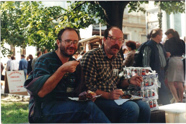 Марек Орамус: В сентябре 1988 года меня пригласили в Прагу на MINICON, и я впервые смог увидеть чешских фэнов у них дома. Я поучаствовал в работе издательской биржи, побывал на художественной выставке, чуть нюхнул внутренней фэновской кухни… все это напомнило мне то, что происходило десяток лет назад в польском движении любителей фантастики, в деятельности которого я принимал участие с самого начала. На MINICON-е, а затем на BILCON-е я видел, что люди собираются вместе ради самой радости бытия в такой компании, ради того, чтобы поговорить о том, что их волнует. Как это обычно поначалу бывает, во всем этом полно энтузиазма и бескорыстия, уже давным-давно утраченных польским движением. У нас деятельность такого рода давно уже стала на профессиональные рельсы; люди, с которыми я начинал в Общепольском клубе любителей фантастики и научной фантастики (OKMFiSF), сегодня работают редакторами в издательствах, трудятся в журнале “Fantastyka”, занимаются литературной критикой или переводами.