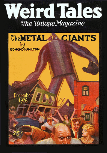 Огромные роботы — перефразируя слова Декарда из фильма «Бегущий по лезвию» — как и все другие машины, могут быть благом или угрозой. Глядя на обложки старых книг, мы чаще находим последнее (это наследие романа «Война миров»Герберта Уэллса 1898 года, в котором марсиане терроризировали Землю с помощью трёхногих машин): роботов, похищающих упавших в обморок героинь (в обязательных облегающих тело костюмах) или металлических монстров, испускающих лучи смерти. Примером может служить рассказ «Металлические гиганты» (“The Metal Giants”, 1926) мастера пальповой научной фантастики Эдмонда Гамильтона о питаемом ядерной энергией компьютере, который создает армию высоченных (100 метров ростом) роботов (сценарий ассоциируется с сериалом «Терминатор»).