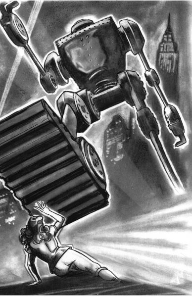 Они бессмысленно бродят, подобно големам, воруют ценности из банков и их не ранят пули, выстрелянные из полицейских винтовок. Эти культовые роботы вдохновили Керри Конрана -- постановщика выдержанного в ретро-стиле фильма «Небесный капитан и мир будущего» (“Sky Capitan and the World of Tomorrow”, 2004),