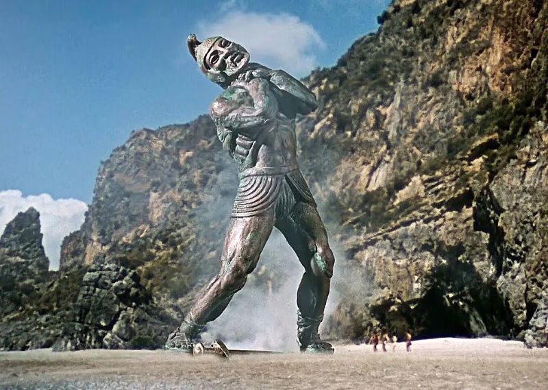 По способу борьбы с интервентами он напоминал радиоактивного Годзиллу, поскольку раскалялся докрасна и сжигал своих врагов. Талоса в действии можно увидеть, среди прочего, в фильме «Ясон и аргонавты» 1963 года.