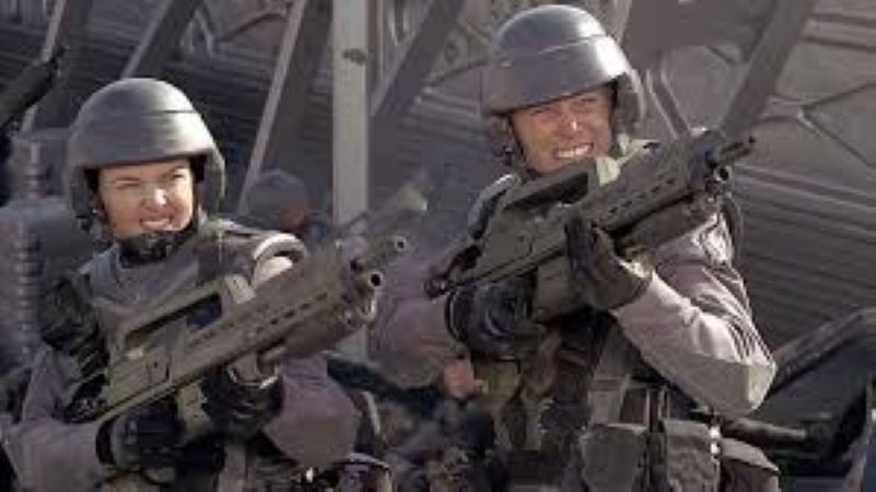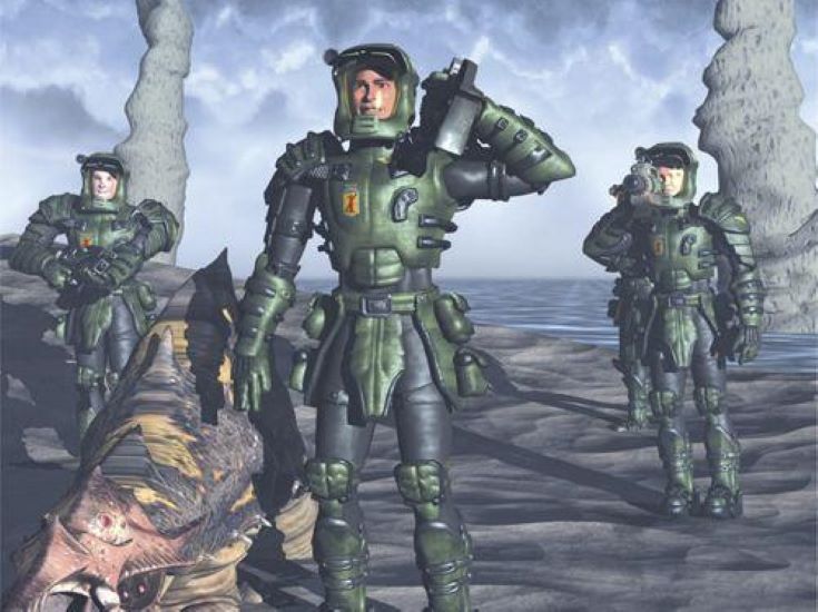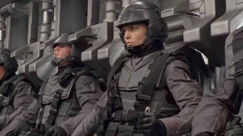 в котором, к сожалению, от этой самой брони отказались (такие доспехи были возвращены в компьютерном анимационном сериале «Головорезы: Хроники звездного десанта» (“Roughnecks: Starship Troopers Chronicles”, 1999), и весь посыл был превращен в острую сатиру.