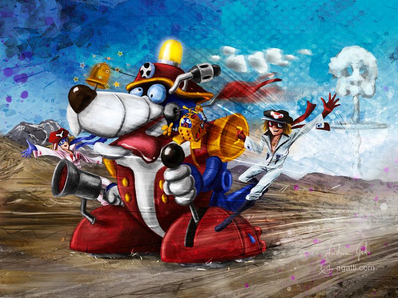 а также японского мастера Хаяо Миядзаки, который использовал подобные машины в сериале «Люпин III» (“Lupin III”, 1971—1972, 1979--1980)