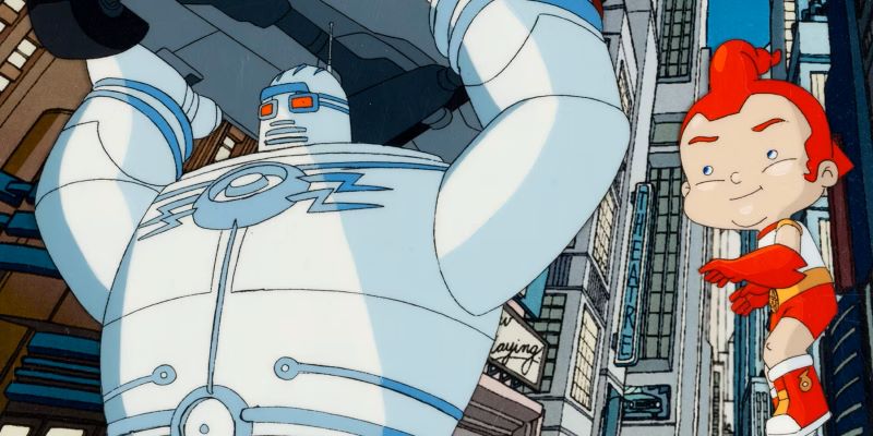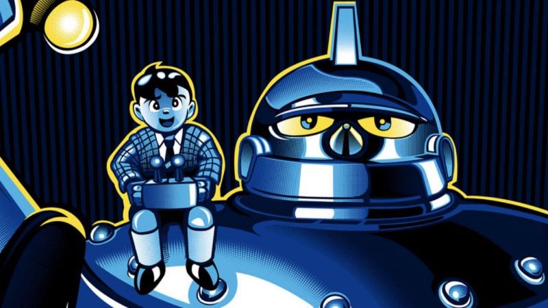 Таким оружием для проигрывавших войну японцев должен был стать титульный гигантский робот, но война закончилась еще до того, как он был построен. Теперь, управляемый десятилетним (!) сыном изобретателя, он занимается борьбой с преступностью и злыми роботами (интересную вариацию на эту тему показал Фрэнк Миллер в комиксе «Большой парень и мальчик-робот Расти» --“Big Guy and Rusty the Boy Robot”).