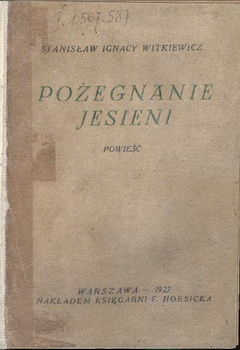 В литературе Виткаций отказался от драмы в пользу романов, в которых ему легче было выражать свои убеждения, не воспринимая, однако, их как произведения Чистой Формы (первобытного составного элемента искусства, действующего непосредственно на «метафизические чувства» и впечатлительность читателя). Его первым опубликованным романом было «Pożegnanie jesieni/Прощание с осенью» (1927). Через три года была опубликована книга «Nienasycenie/Ненасытимость».(Я, было, собирался привести тут все обложки первоизданий. Но они такие невзрачные... Поэтому ограничился лишь самой первой. W.)