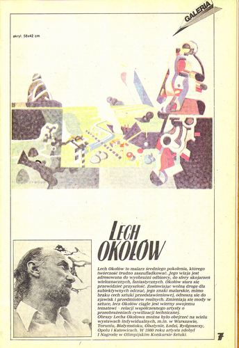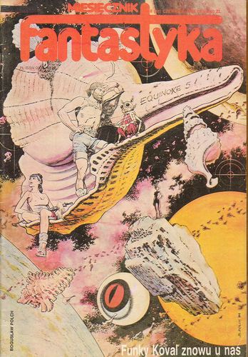 7. В рубрике рецензий Анджей Невядовский/Andrzej Niewiadowski высказывает сомнения в разумности критериев, с которыми подошли в издательствах «Alfa» к составлению третьего тома («Путешествие на Луну») многотомной «Польской фантастической новеллы» («Podróż na Księżyc». «Polska nowela fantastyczna», tom 3. Zebrał S. Otceten. Wydawnictwa “Alfa”, Warszawa, 1984); Лешек Бугайский/Leszek Bugajski хвалит дебютантский томик рассказов Бронислава Киевского «Границы терпимости» (Bronisław Кijewski “Progi tolerancji”. Wydawnictwo Poznańskie, Poznań, 1984); а Мацей Паровский/Maciej Parowski недоумевает над тем, кому и зачем потребовалось переводить и издавать весьма серенький роман румынского писателя Константина Кублешана «Трава» (Constantin Cubleşan “Trawa”. Tłumaczyli Janina i Michaj Cotelnic. Seria «Fantastyka – Przygoda», “Iskry”, Warszawa, 1984).