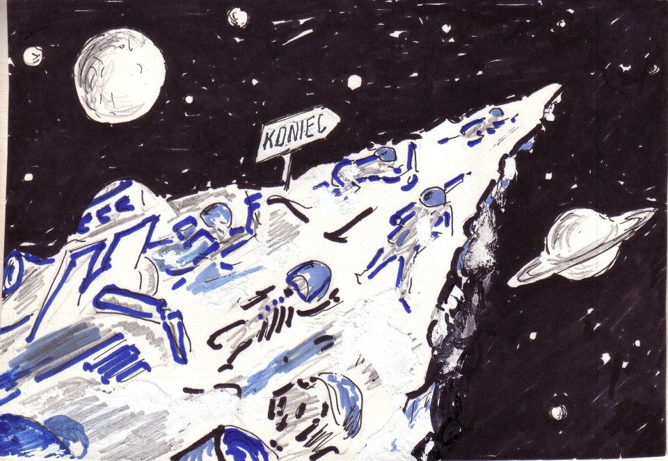 А это залихватская зарисовка, которая называется «Конец вселенной» (1990).