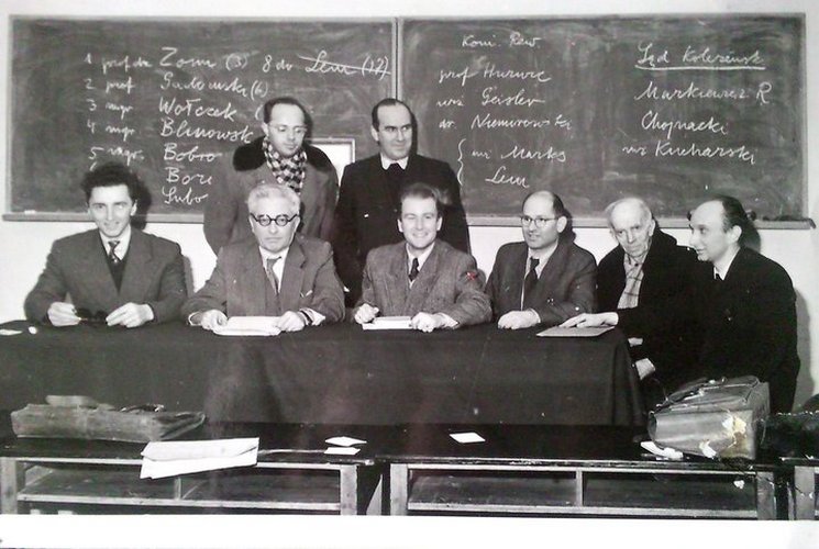 Среди членов правления помимо Боруня (он крайний справа) легко узнать известного физика и популяризатора астрономии Ольгерда Волчека/Olgerd Wołczek (1922 – 1982, третий, считая слева), физико-химика Юзефа Хурвица/Józef Hurwic (род. 1911)(четвертый слева), астронома Яна Гадомского/Jan Gadomski (1889 – 1966)(пятый слева). Ну а одного из маячащих за их спинами только слепой не опознает.