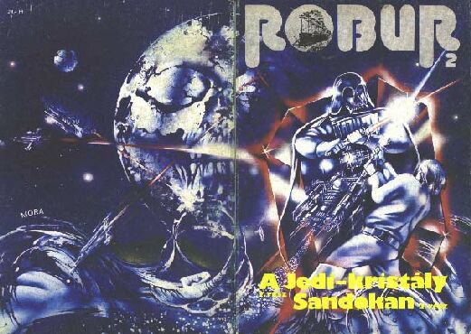 Вот он, самый первый номер «Робура», вышедший в 1984 году. Сказать мне о нем почти нечего, кроме того, что видите сами. В номере было напечатано начало одного из романов итальянского писателя-приключенца Эмилио Сальгари о благородном пирате Сандокане. И начало романа Алана Дина Фостера/Alan Dean Foster «Осколок кристалла власти/Splinter of the Mind’s Eye» из мира «Звездных войн». Обложка ДЬËРДЯ ВИСТА/Viszt György. Этот же художник иллюстрировал роман А.Д. Фостера.