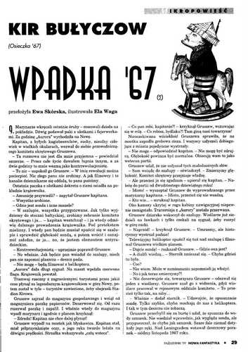 4. Повесть российского писателя Кира Булычева, которая называется в оригинале «Осечка-67» (1993 (написана 1968); 1995, “Фантакрим-MEGA”, № 1; 1995, авт. сб. «Чужая память») перевела на польский язык под названием “Wpadka’67/Промах-67” ЕВА СКУРСКАЯ/Ewa Skórska (стр. 12-16). Иллюстрации ЭЛИ ВАГИ /Ela Waga.